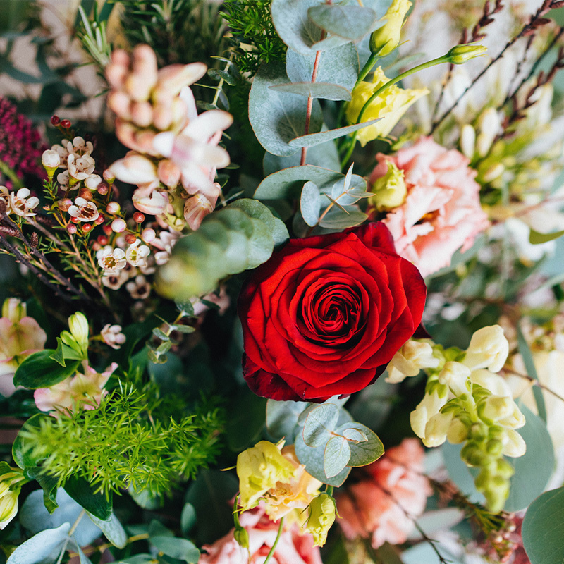 Vase arrangement (Mixed flowers including 1 Red Rose)